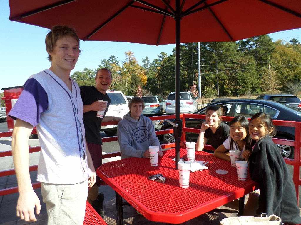 Keith was on call this weekend, so Sunday afternoon, the boys and Emily met me and the girls up at HCM park. We played tennis while the girls took their lessons. Whatever calories we burned on the court, we put right back on afterwards at the "Cook Out". Best greasy burgers in town and totally worth it!