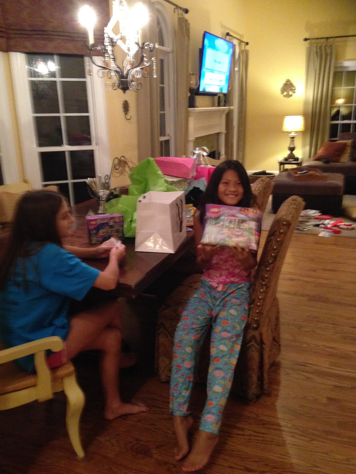 Then Ellie and I sat in massage chairs while the girls rode the motorized stuffed animals around the mall. (Ellie was sore from her riding lessons that morning and I was sore from tennis... the season has begun and my first match is tomorrow!) The girls all had so much fun! We ended the day at the mall with a cookie from the Great American Cookie Company, and warm buttery pretzel nuggets! Then when we got home the girls wanted to go for another swim, so Keith took them to the pool!