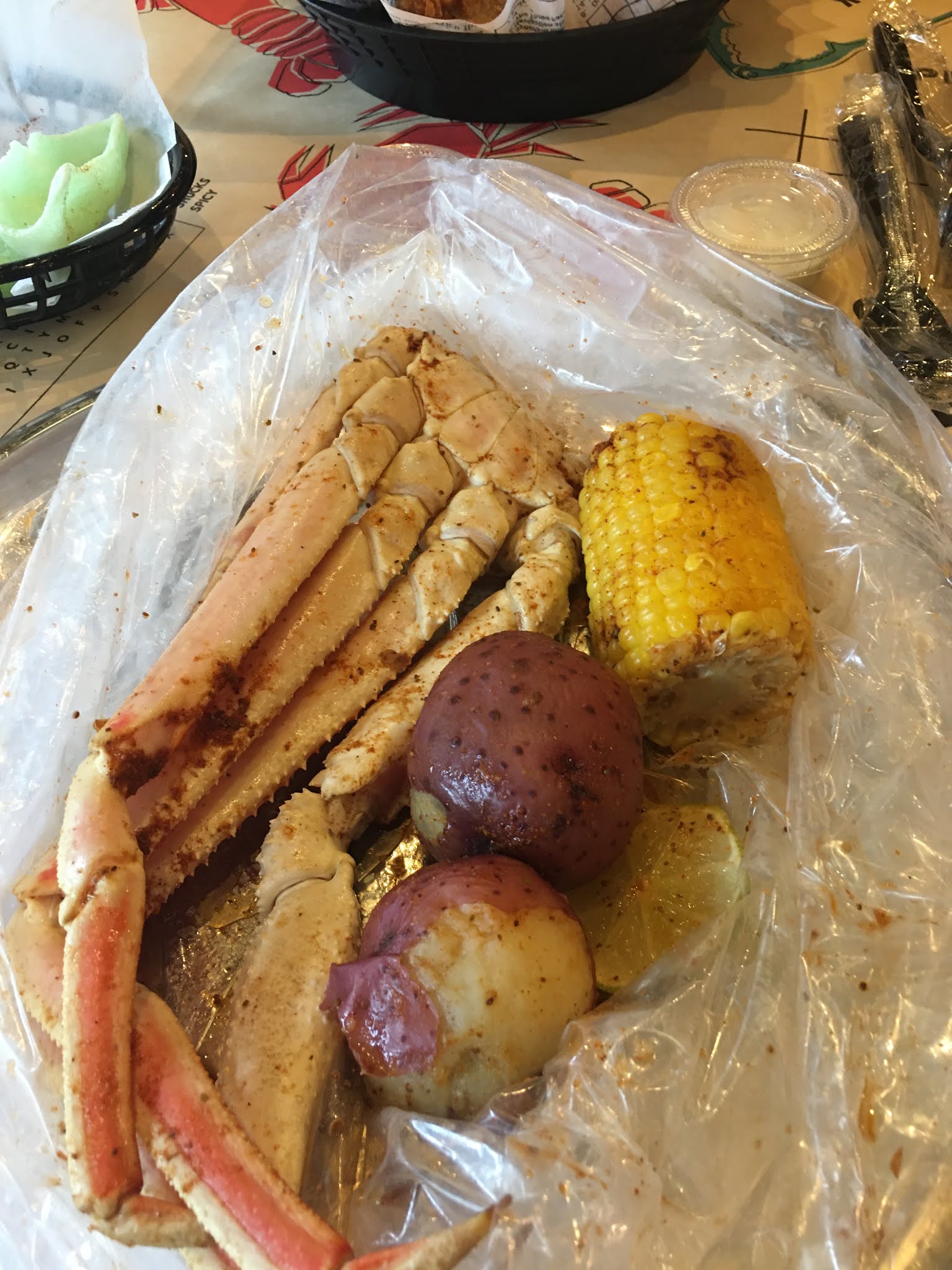 My honey asked for a lunch date at the Hook & Reel! He got the fried catchfish basket and I got the crab boil! Yum!!! How cute is my Pirate!?! Arghhh!